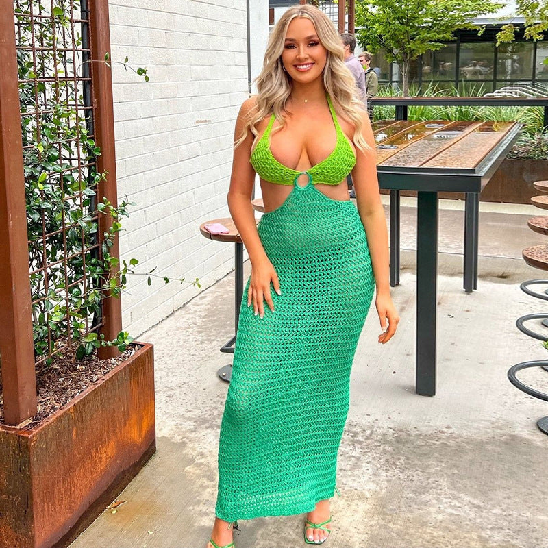 2023 New Solid Color Sexy Camisole Low -neck Exposed Chest Dress Knitted Hip Skirt Female