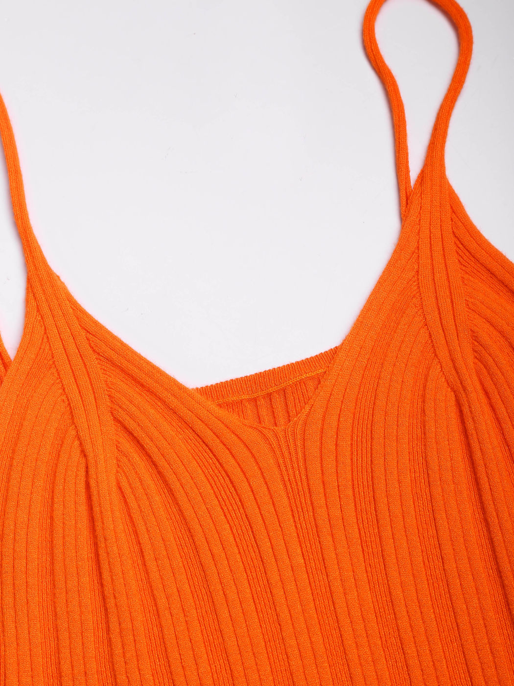 2023 New Solid Color Sexy Camisole Low -neck Exposed Chest Dress Knitted Hip Skirt Female