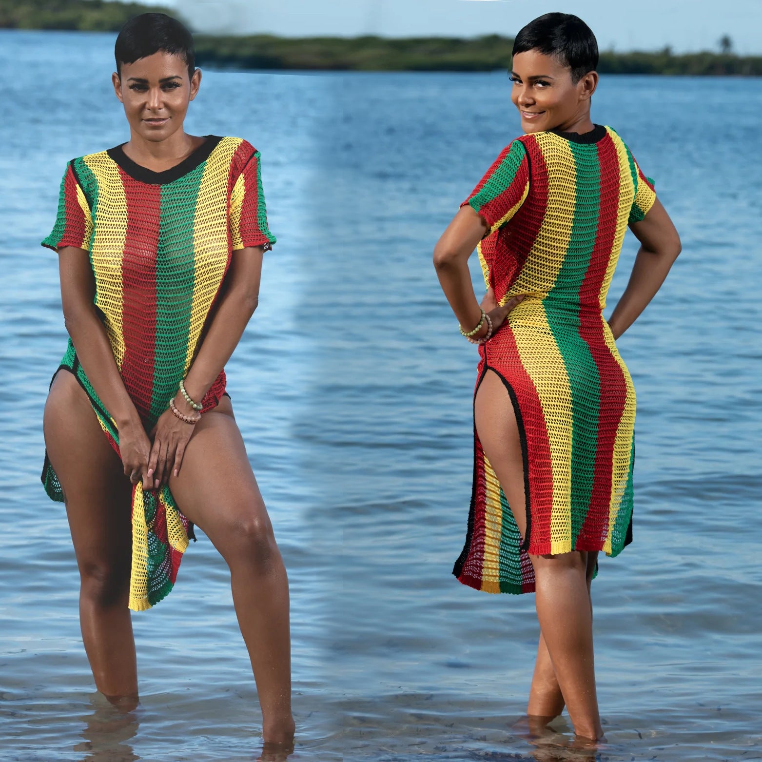 Knitted Short-sleeved Round Collar Dress Holiday Casual Beach Bikini Cover