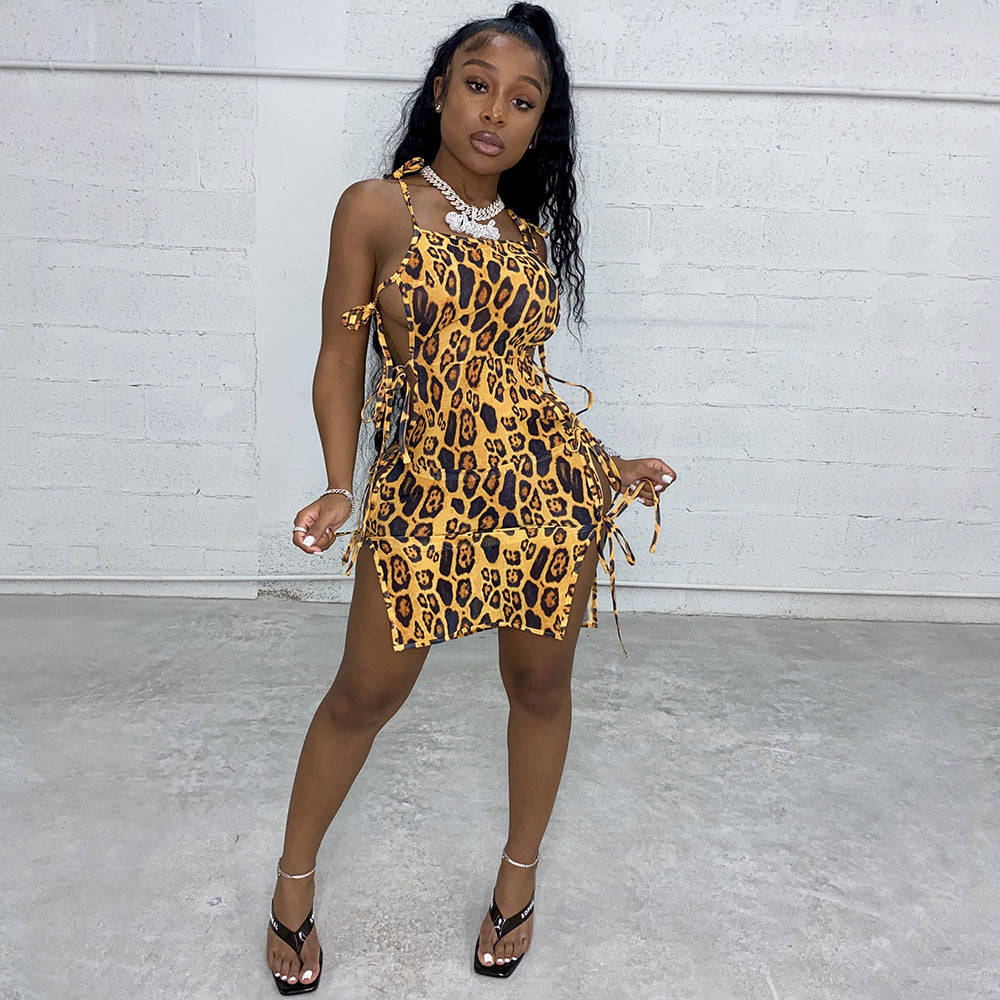 Sexy Leopard Print Strappy Sling Stitching Dress